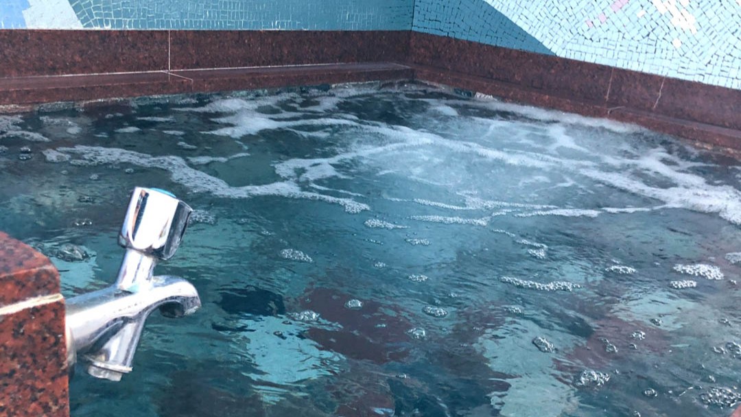 バイブラが控えめに湧くスペースもあり。 - あつ湯には微細な泡が湧き立つ