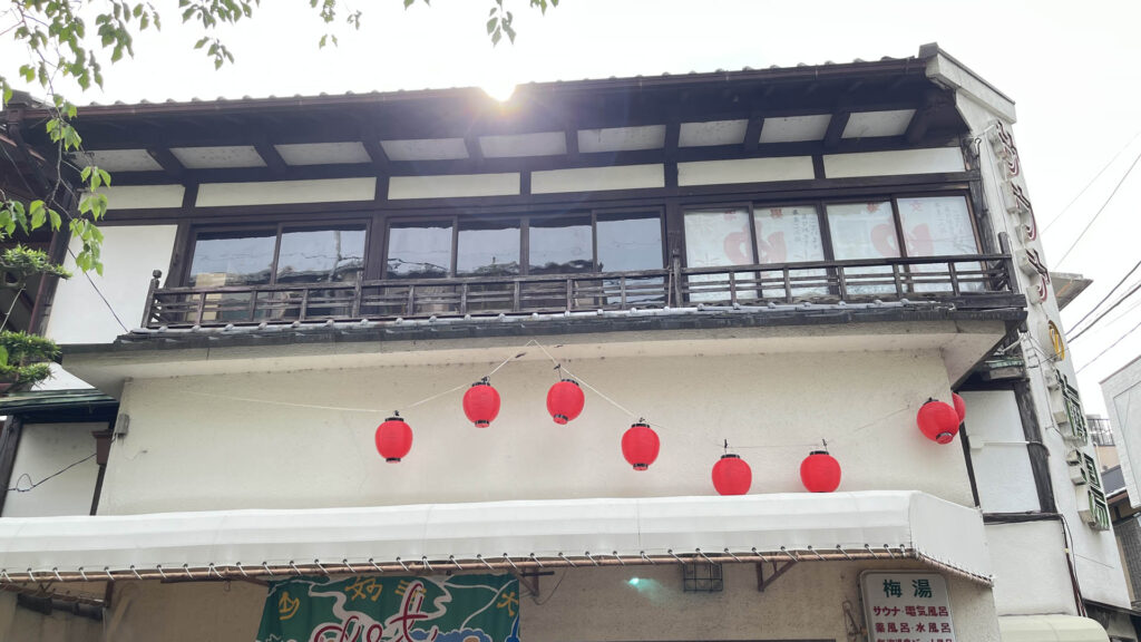 一際目を引くネオンが目印の「サウナの梅湯」。